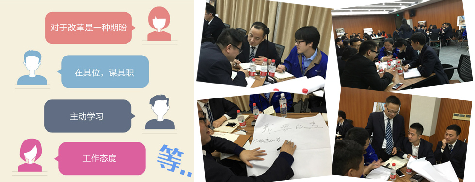 第二环节,各团队反思:“改变了什么?”对于改革是一种期盼;在其位,谋其职;主动学习;工作态度等。